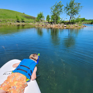 Tristan and I went to the Wazee Lake beach last year and I was bummed we didn’t bring any floats, paddleboards, or kayaks. Lake Wazee is Wisconsin’s deepest lake at over 330 ft, it used to be a taconite mine. The water has clear visibility up to 40ft and people scuba dive there, which is pretty neat! The beach is built out as a protected cove with access to the larger lake. The cove has a little island that you can swim or paddle to that Tristan had fun exploring. The beach is very clean and spacious. The water is clean and doesn’t get too deep within the cove. There are plenty of picnic tables and a few volleyball nets set up as well as a small playground. During the busy season you can order food and beverages at the concessions. There are bathrooms right off the beach and a changing building with showers closer to the parking area. The broader recreation area has a campground and 15 miles of hiking and biking trails I’d like to explore sometime in the future. And bonus, this recreation area is only $5 to enter! We were prepared this time and brought one of the ISUPs (inflatable standup paddleboard) along; Tristan also brought his snorkel mask and saw a fish from the board. It was a great place for him to practice paddling on his own for the first time as well. He did great! We'll probably have to bring both on our next adventure. You can read a bit more about Wazee Lake Recreation Area - Jackson County, WI here.