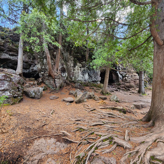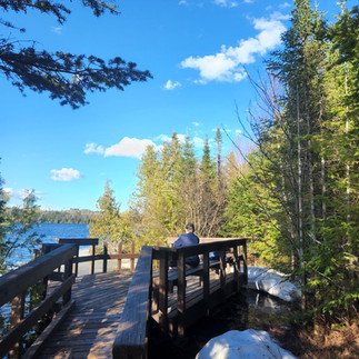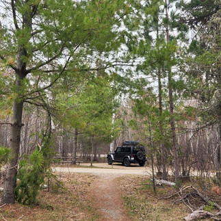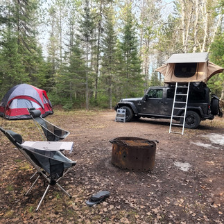 From Soudan Mine, we backtracked a bit to Zup's in Tower to get some groceries. Then we headed to Bear Head Lake State Park to set up camp for night one; about a 15-minute/12 mile drive from Soudan Mine. The campground is situated along a northern arm of Bear Head Lake. There were very docile dear meandering the campground, along with a very brazen squirrel (not pictured-he was all over our camp and not fearful at all). We reserved drive-in site #51 for $32/night. Our site had a nice view of the trail to the lake. There were only 2 other sites occupied. The campground water was not turned on for the season so we utilized water bottles for our water needs and noted to fill up our larger vessels when able. The bathrooms were also not open yet for the season, which inspired a later purchase of a packable toilet and accessories. Mason cooked for us and we enjoyed smores before bed. Although not forecasted, a very intense thunderstorm rolled through very early morning. Bright lightning and booming thunder edged it's way closer through the storm which resulted us seeking refuge in the Jeep for an hour or so. Thankfully there was no wind during the storm but there was plenty of rain! We managed to get some rest in the Jeep and get some more restful sleep after moving back into the roof top tent when the thunder and lightning died out.