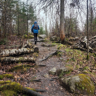 We stopped in Ely and had a great lunch (and an even better local blueberry blonde ale) at the Boathouse Brewpub & Restaurant. After lunch, we stopped at Wintergreen Northern Wear where I got a locally made "crunch cap" (pictured below). These caps are quick-drying, packable, and they even float! It quickly became my go-to hat for this trip. We then headed over to hike Kawishiwi Falls, ~1 mile/30-minute out and back trail. We were thankful for our rain gear and got to field test our waterproof hiking boots which performed great! There were so many awesome views on this hike between the gnarly tree roots and the raging falls. Mason also got to test out recording the hike with the GoPro.